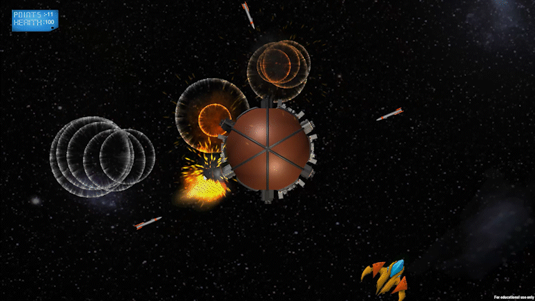 This is one of the many group projects that I participated while attending college. I made it with a club focused on preparing students for the Video Games Industry. This game takes great inspiration from the hit arcade classic, “Missile Command.” Players must defend their planetary galactic base by shooting incoming enemy missiles and orbiting ships. The game ends when the player’s base is completely destroyed, just like in “Missile Command.”