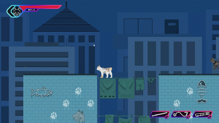 A narrative-driven, 2D brawler that I worked on for my Capstone project. The player controls a cat named “Ryu” who’s an ex-yakuza member trying to save his wife, “Hime,” from the clutches of the evil crime boss “Daichi.” The game is presented in a level-based format with dialogue sections that appear before and after each level and features waves of pesky goons and challenging bosses to fight.